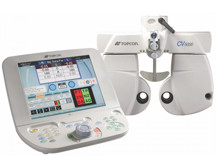 De Topcon CV-5000 automatische phoropter behoort tot de nieuwste generatie phoropters en kan daarom op afstand worden bediend via het Topcon KB-50S bedieningspaneel of een PC. De CV-5000 kan op verschillende manieren gekoppeld worden aan auto-refractometers, automatische lensmeters en andere CV-5000 automatische phoropters.